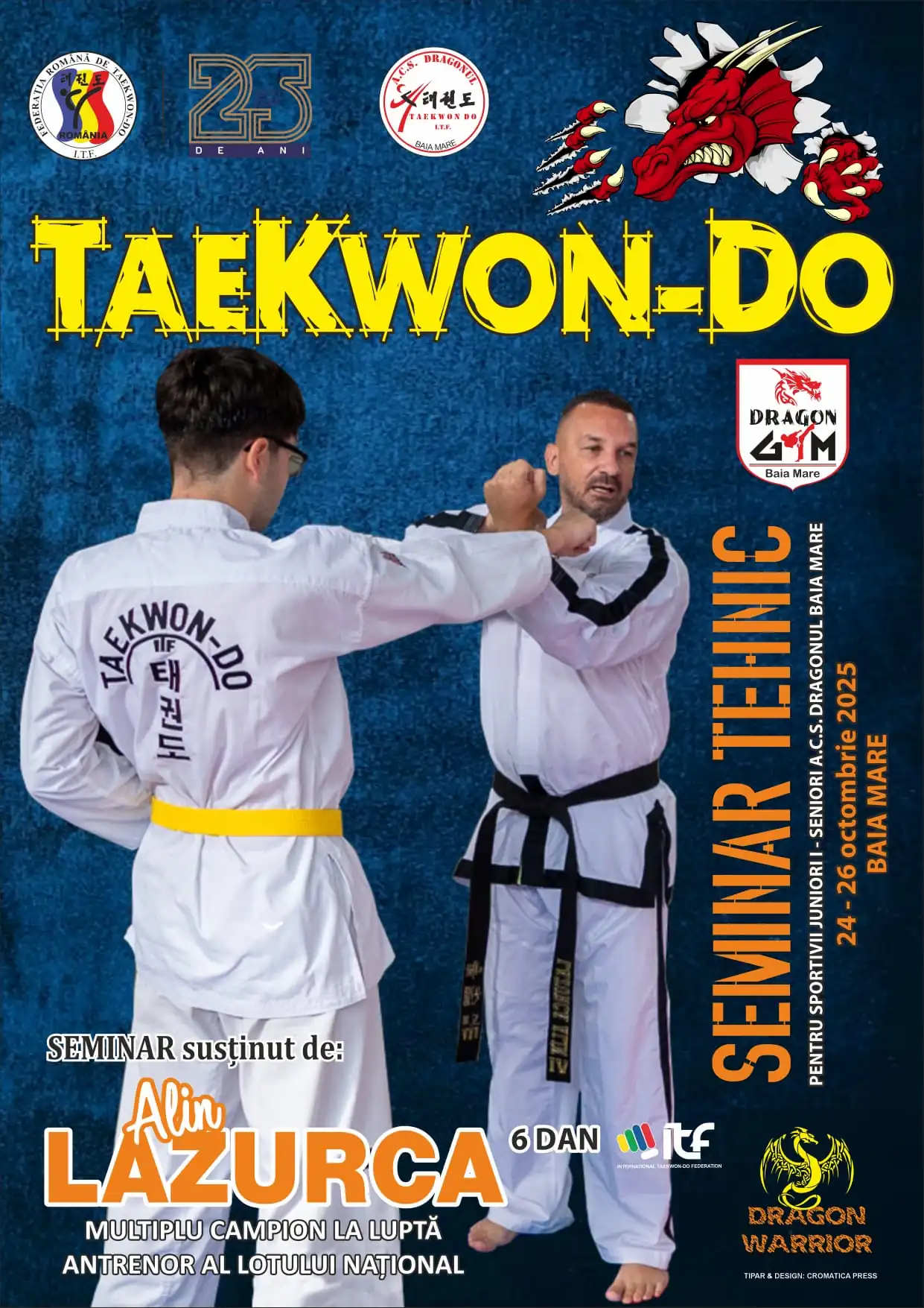 În perioada 24 – 26 octombrie 2025, la Sala ACS Dragonul Baia Mare, va avea loc Seminarul de Luptă – Taekwon-do I.T.F., susținut de maestrul Alin Lazurcă, posesor al centurii 6 Dan și antrenor al Lotului Național de Taekwon-do I.T.F.