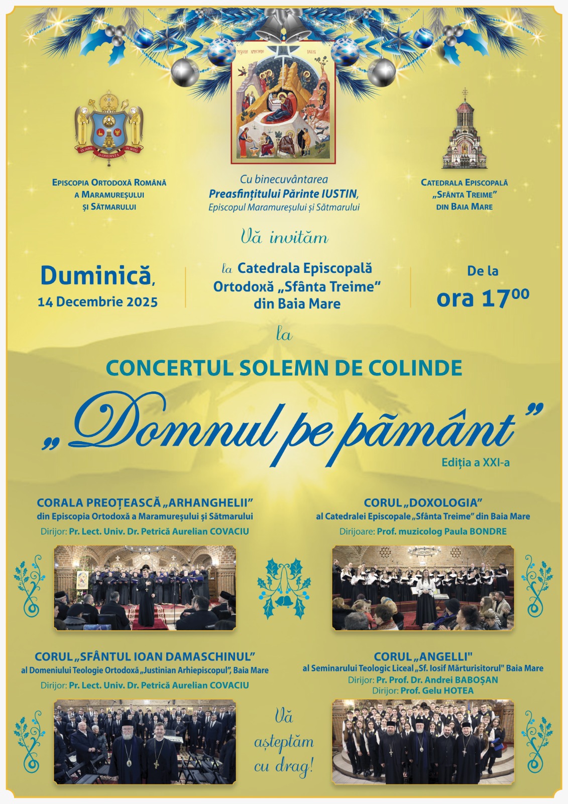 Duminică, 14 decembrie, ora 17:00, Catedrala Episcopală „Sfânta Treime” Baia Mare va găzdui Concertul solemn de colinde „Domnul pe Pământ” – Ediția a XXI-a.