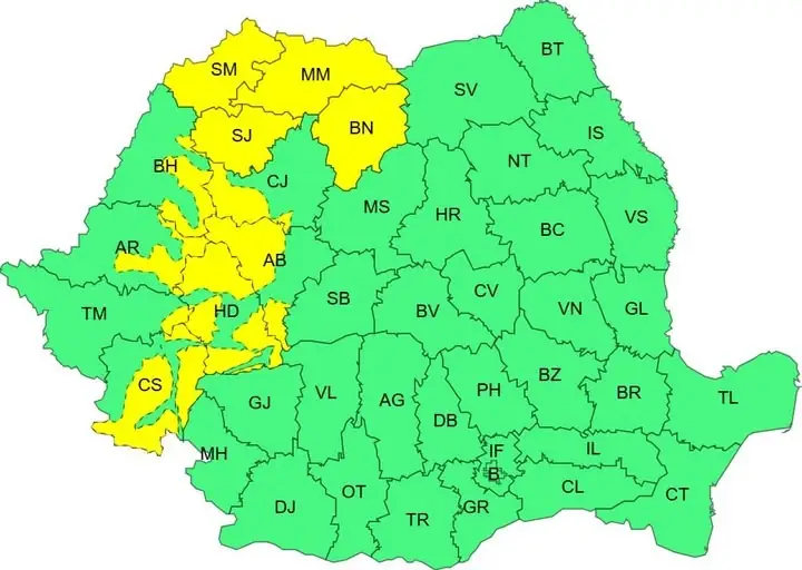 Potrivit meteorologilor, în zonele montane și submontane din Caraș-Severin, Hunedoara, Timiș, Arad, Alba, Bihor, Satu Mare, Sălaj, Maramureș, Cluj și Bistrița-Năsăud sunt așteptate precipitații însemnate cantitativ, care pot cumula între 20 și 30 l/mp.