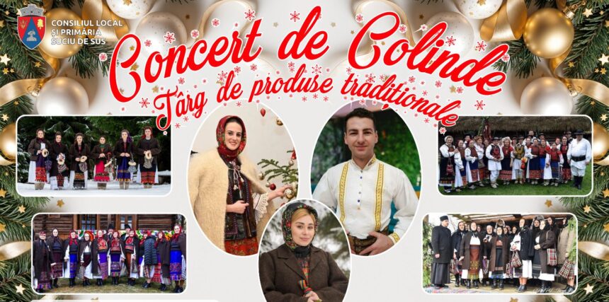 Sâmbătă, 6 Decembrie, începând cu ora 13:00, pe platoul din fața Primăriei Suciu de Sus se va desfășura un concert de colinde însoțit de un târg de produse tradiționale.