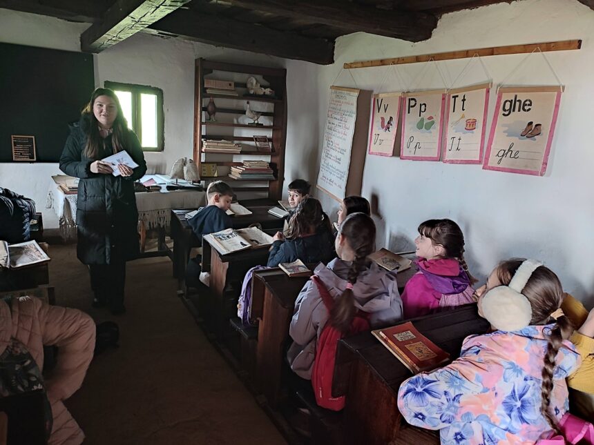 Experiență educativă inedită pentru elevii clasei a III-a G de la Școala Gimnazială „Victor Babeș” Baia Mare, care au pășit vineri în universul satului tradițional în cadrul atelierului „În băncile școlii de odinioară – vizită la școala din sat”. Sub îndrumarea muzeografului Gabriela Filip, copiii au descoperit gospodăria de altădată, ocupațiile tradiționale și au retrăit atmosfera școlii de odinioară, chiar în băncile din lemn ale Casei Școală Șomcuta Mare.