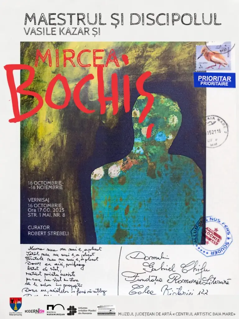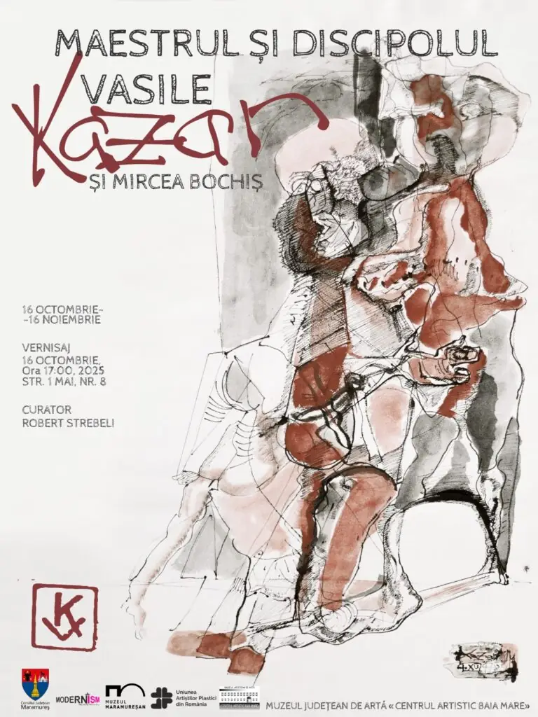 În data de 16 octombrie, de la ora 17:00, Muzeul Județean de Artă «Centrul Artistic Baia Mare» vă invită la o expoziție de excepție, dedicată dialogului peste timp dintre două mari personalități ale artei românești: Vasile Kazar, maestrul graficii maramureșene, și Mircea Bochiș, artist contemporan a cărui creație extinde și reinterpretează spiritul maestrului într-un limbaj vizual actual.