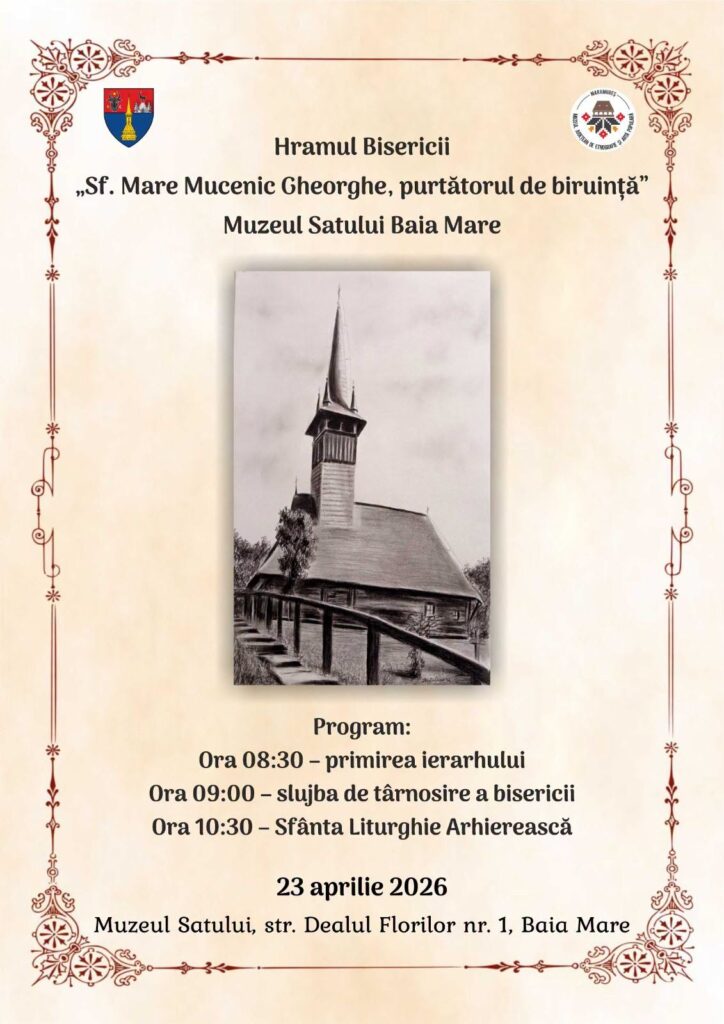 În data de 23 aprilie 2026, Muzeul Satului Baia Mare devine loc de pelerinaj și sărbătoare, odată cu celebrarea hramului bisericii „Sfântul Mare Mucenic Gheorghe, purtătorul de biruință”, aflată în incinta instituției. Evenimentul, încărcat de semnificație spirituală, marchează totodată și un moment important pentru comunitatea locală, prin slujba de sfințire a lăcașului de cult.