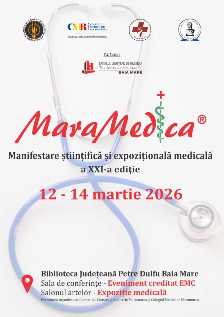 Camera de Comerț și Industrie Maramureș în parteneriat cu Colegiul Medicilor Maramureș anunță organizarea, în perioada 12 – 14 martie, a celei de-a XXI-a ediții a manifestării științifice și expoziționale MaraMedica. În acest an, Spitalul Județean de Urgență „Dr. Constantin Opriș” Baia Mare se alătură în calitate de partener al evenimentului, consolidând astfel caracterul profesional și aplicat al manifestării.