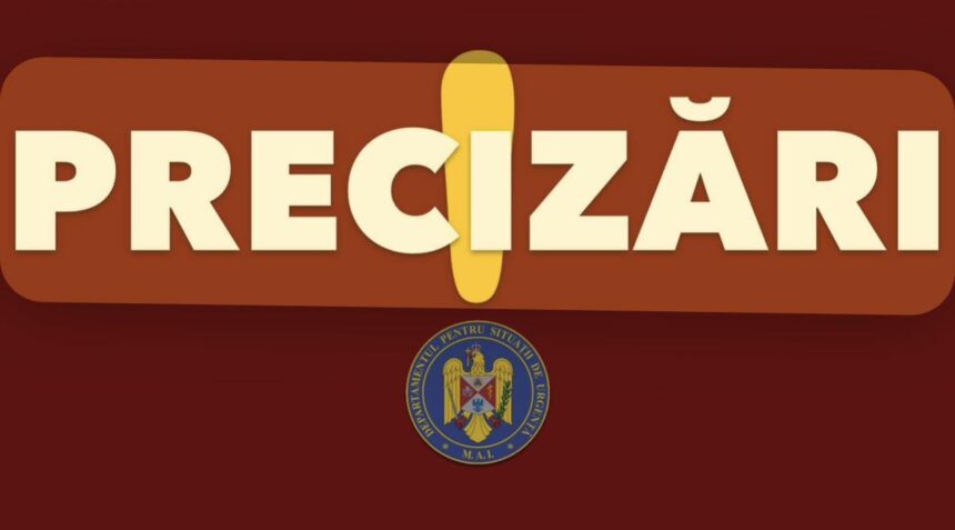Redăm integral declarația transmisă de Departamentul pentru Situații de Urgență: