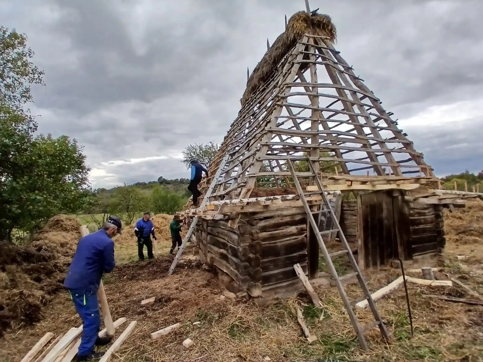 Într-o cu totul altă parte, la interferența Chioarului cu Lăpușul, la Preluca Nouă, colegii noștri harnici, Gavril Dunca și Gheorghe Florian au participat la Claca de învelit șura cu paie, organizată de familia Andreia și Ovidiu Ștef. Pentru acest eveniment, colaboratorul și prietenul muzeului, Firicel Grigor, a pregătit pită coaptă în cuptorul muzeului.
