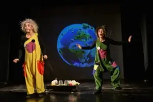 Vreți să știți cum iau naștere culorile? Secretul combinării lor e lecția despre viața fascinantă a acestora. Doi clovni simpatici, Buba și Bibi, ne învață cum să privim cu alți ochi lumea culorilor. Cum să le descoperim adevărata strălucire. Într-o atmosferă destinsă, spectacolul este o incursiune în lumea tainică a luminii, care se descompune sub ochii noștri asemeni unui evantai de raze colorate. Jocul este metoda interactivă a învățării creative. Puțină magie și un suflu misterios planează în cadrul scenei, unde copiii sunt invitați să experimenteze puterea combinatorie a culorilor.