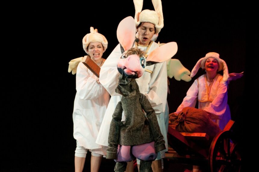 Sâmbătă, 7 februarie, de la orele 10.00 și 11.30, la Teatrul de Păpuși, cei mici sunt invitați la spectacolul Muzicanții din Bremen, după Frații Grimm, regia artistică Ciprian Huțanu.