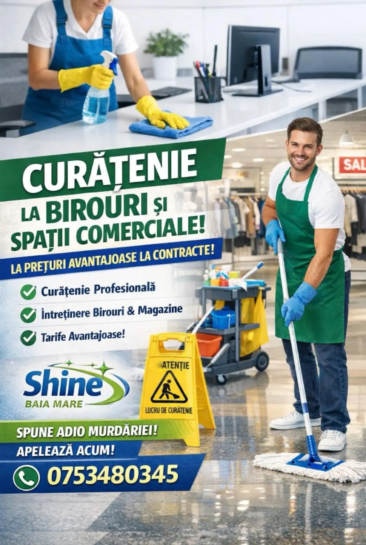 Shine Baia Mare înseamnă mai mult decât servicii de curățenie. Înseamnă seriozitate, punctualitate și respect pentru fiecare spațiu în care echipa intră”, spune Raluca Pop , manager Shine Baia Mare.