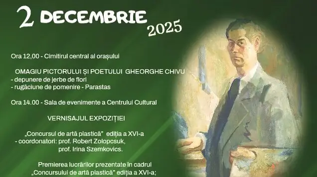 Centrul Cultural Sighetu Marmației și Școala de Artă ”Gheorghe Chivu” organizează în data de 2 decembrie Concursul de artă plastică „Domnului profesor cu dragoste”, ediția a XVI-a, eveniment omagial dedicat pictorului și poetului Gheorghe Chivu.