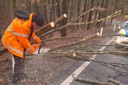 Lucrări de îndepărtare a arborilor aflați în pericol de prăbușire, pe DN18, în Pasul Gutâi
