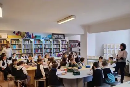 Oră de caligrafie la Biblioteca Județeană Baia Mare pentru elevii clasei a II-a A de la Școala Gimnazială „Nichita Stănescu”