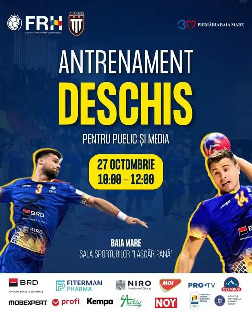 Baia Mare devine, din nou, capitala handbalului românesc. Echipa națională a României își deschide porțile pentru suporteri înaintea debutului în Trofeul Carpați NIRO, într-un antrenament special organizat pentru fani, luni, 27 octombrie, între orele 10:00 și 12:00, la Sala Sporturilor „Lascăr Pană”.