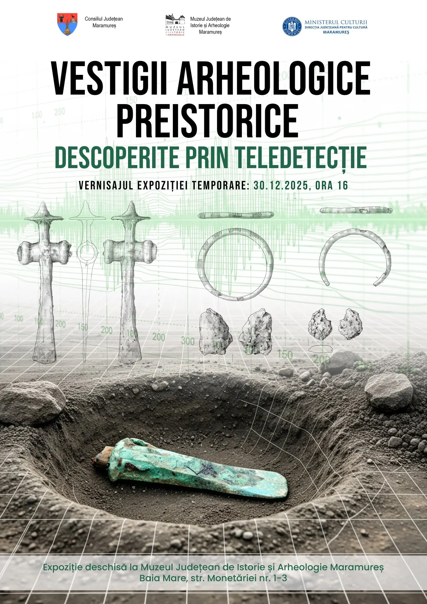 Muzeul Județean de Istorie și Arheologie Maramureș, în parteneriat cu Direcția Județeană pentru Cultură Maramureș și Asociația ˮDetecție Nordˮ organizează în data de 30 decembrie 2025, ora 16,00, vernisajul expoziției „Vestigii arheologice preistorice descoperite prin teledetecție”.