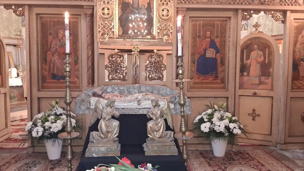 Un moment aparte al acestei zile îl reprezintă apropierea credincioșilor de statueta ce-L înfățișează pe Mântuitor întins în mormânt, vegheat de doi îngeri.